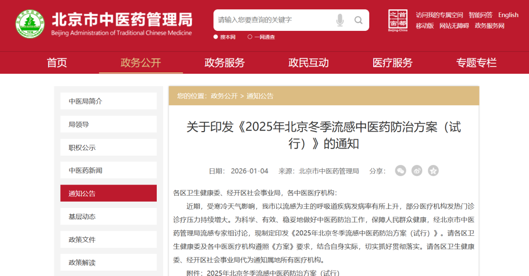 【行业动态】北京市中医药管理局关于印发《2025年北京冬季流感中医药防治方案(试行)》的通知